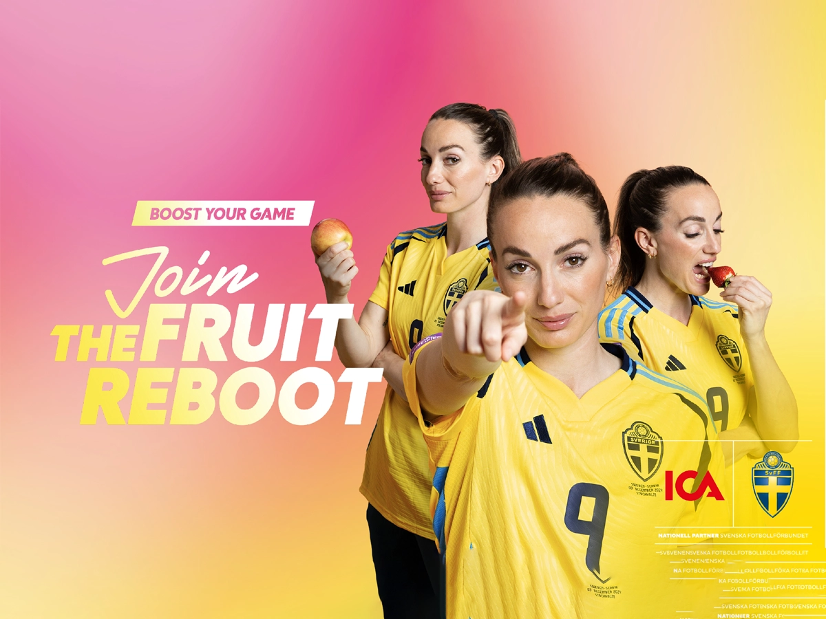 Med ett växande fokus på folkhälsa och bättre matvanor hos unga lanserar ICA, tillsammans med Svenska Fotbollförbundet, en kampanj som kombinerar rörelseglädje, humor och frukt. Målet är att skapa beteendeförändring i både hem och butik, där frukt lyfts som det självklara mellanmålet. Frukt som energiboost, inte bara i teorin Under namnet “Join the Fruit Reboot” …