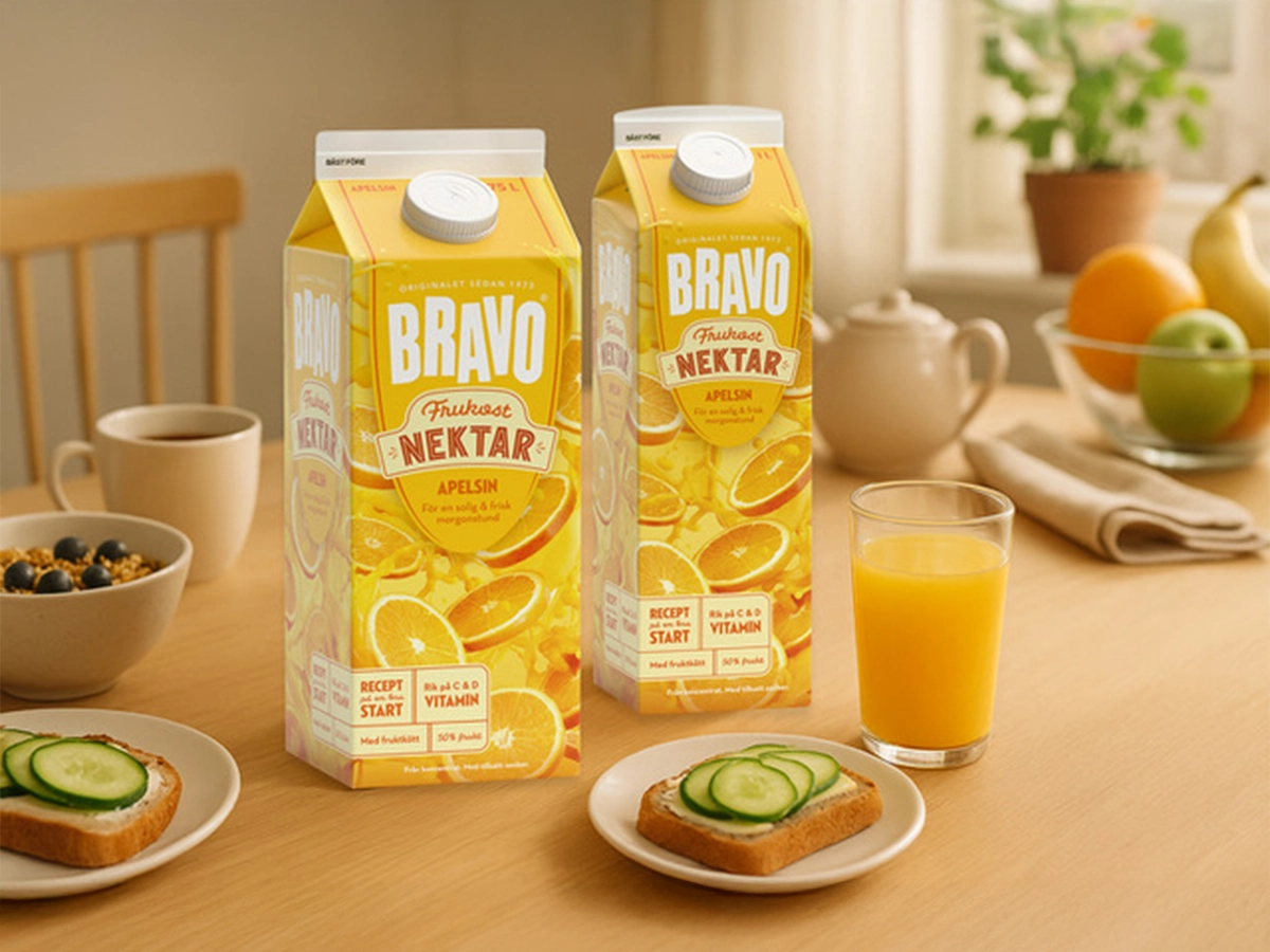 Nu kommer Bravo med en helt ny fruktdryck för frukostbordet: Bravo Apelsin Nektar. Drycken innehåller 50 % frukt och är berikad med C- och D-vitamin en kombination som gör den till ett prisvärt alternativ till klassisk apelsinjuice. Med fruktkött får den en fylligare textur som uppskattas av både vuxna och barn.