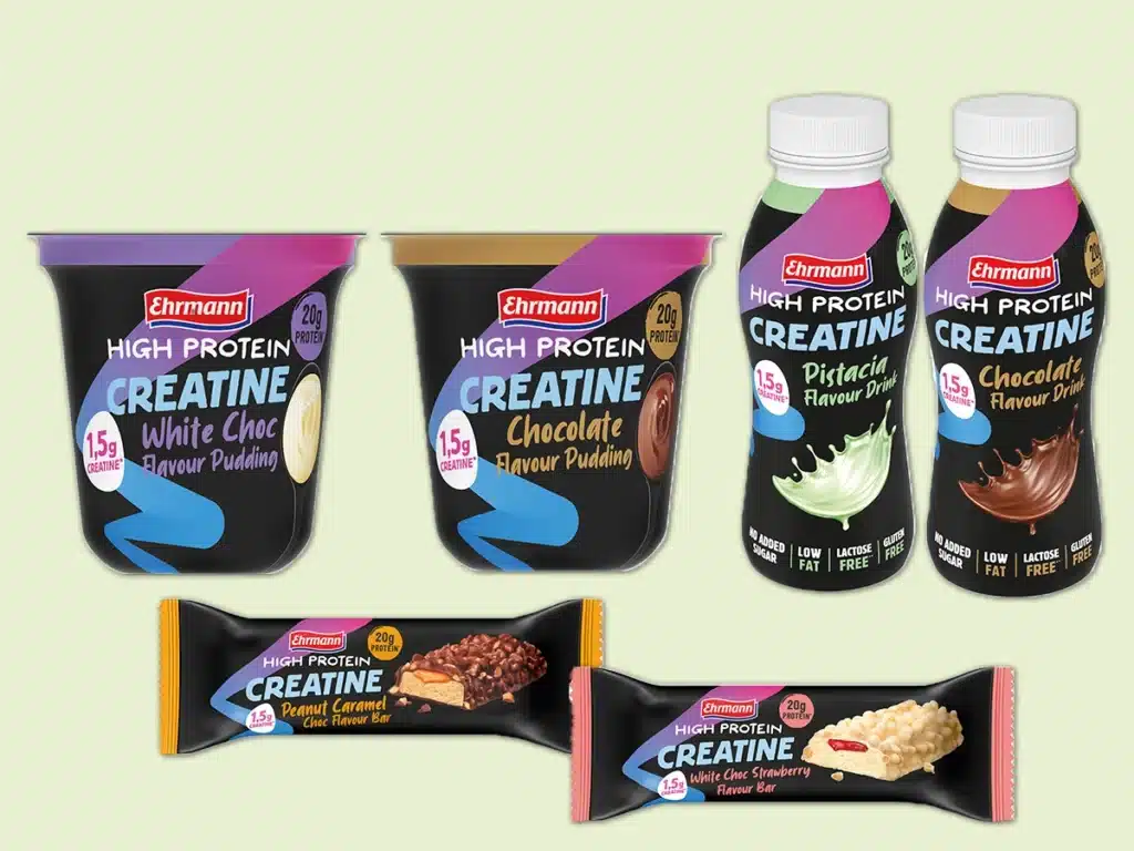 Ehrmann lanserar ett nytt sortiment under namnet High Protein + Creatine. Produkterna kombinerar proteinrika mejeriprodukter med kreatin, ett ämne som förekommer naturligt i musklerna och spelar en roll i kroppens energiomsättning.