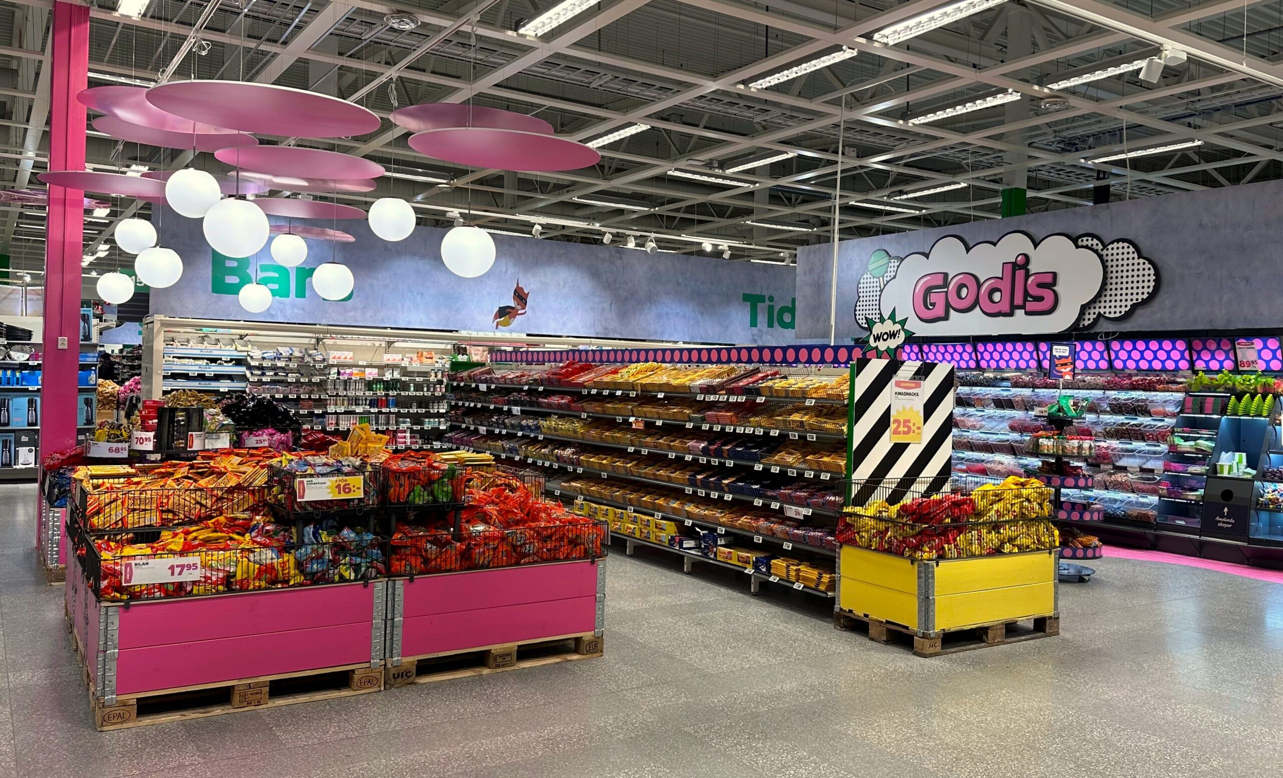 Coop har tagit initiativ till att förbättra kundupplevelsen vid godisavdelningen genom ett nytt koncept. Med lekfulla färger, belysning och musik skapas en inbjudande och färgstark atmosfär. Det nya konceptet har testats och framgångsrikt implementerats i pilotbutiker som Stora Coop Sundby Park och Stora Coop Sundsvall, där både kundernas upplevelse och försäljningen av lösviktsgodis har ökat.