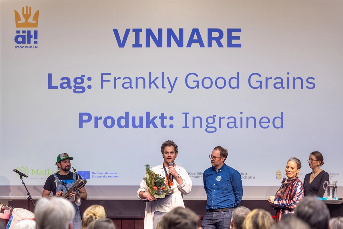 När finalen av Ät!Stockholm 2025 avgjordes på Södertälje Science Park stod det klart att årets vinnare blev Ingrained en nytänkande korv från Frankly Good Grains. Produkten beskrivs som ett ”Isterband 2.0”, där gräsbeteskött möter svenskt korn i en modern tappning av ett klassiskt hantverk.