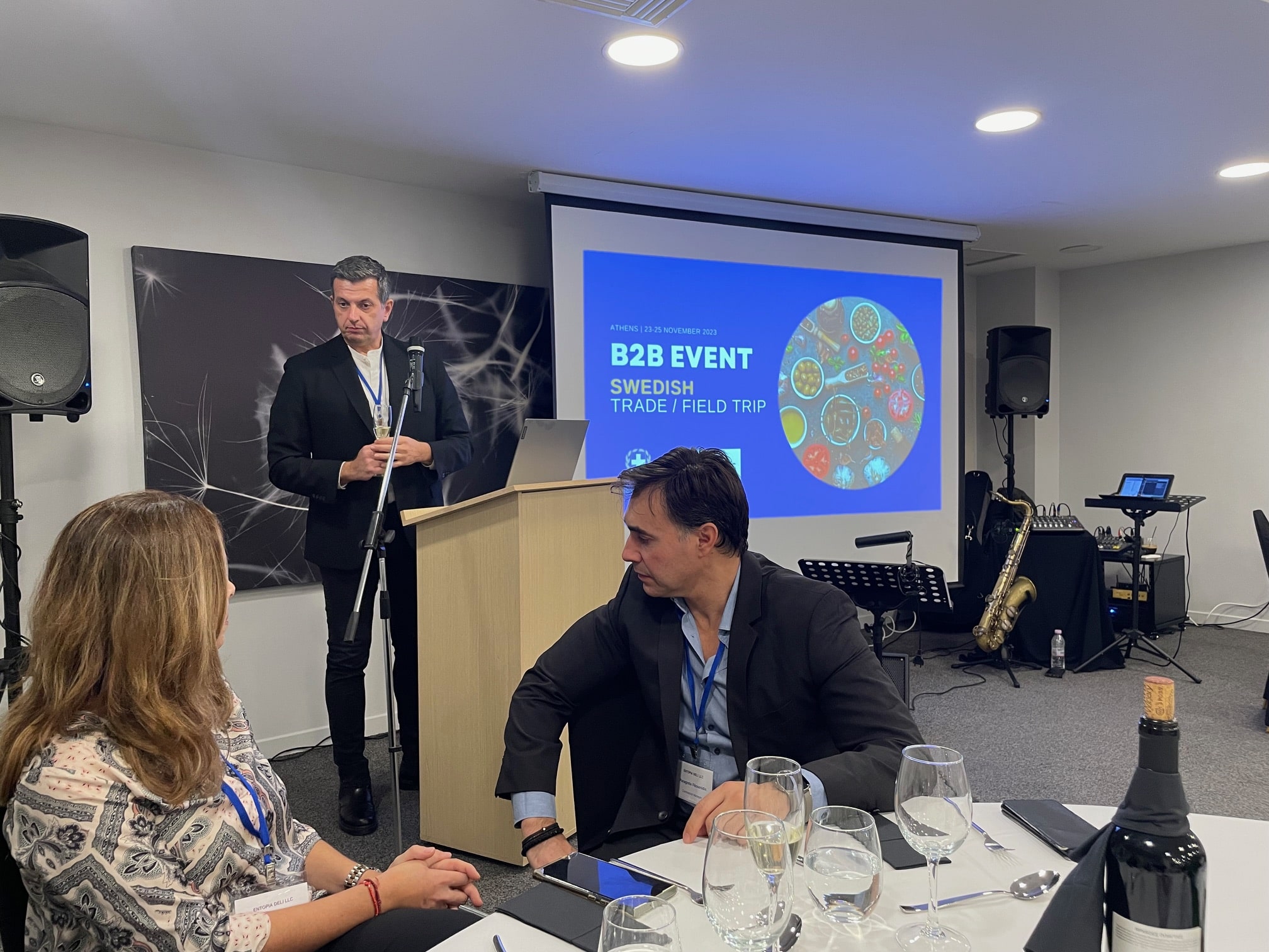 Första dagen avslutades med en grekisk buffémiddag för gäster och leverantörer, med ett 50-tal personer runt borden.